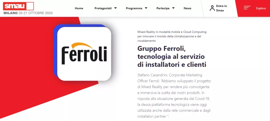 20201022日,國際信息與通信技術(shù)展覽會(huì)(SMAU 2020)在意大利召開,在暖通行業(yè)享譽(yù)國際60多年的Ferroli法羅力再次獲得了國際大獎(jiǎng)--創(chuàng)新獎(jiǎng)。表彰企業(yè)通過促進(jìn)和分享已經(jīng)在自身研究領(lǐng)域中成功實(shí)施創(chuàng)新項(xiàng)目的直接經(jīng)驗(yàn),為整個(gè)國家乃至全世界的生產(chǎn)系統(tǒng)所必需的變革進(jìn)程提供有效支持。