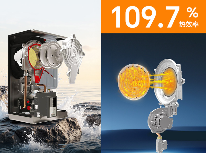 維羅納 PRO 搭載專利太陽(yáng)花漫射式燃燒器*,熱效率高達(dá) 109.7%*,不僅大幅提高了能源利用效率,還能有效降低氮氧化物的排放,且通過(guò)歐洲 Hydrogen Ready 氫適配認(rèn)證,可實(shí)現(xiàn)20%混氫燃燒,更環(huán)保節(jié)能。